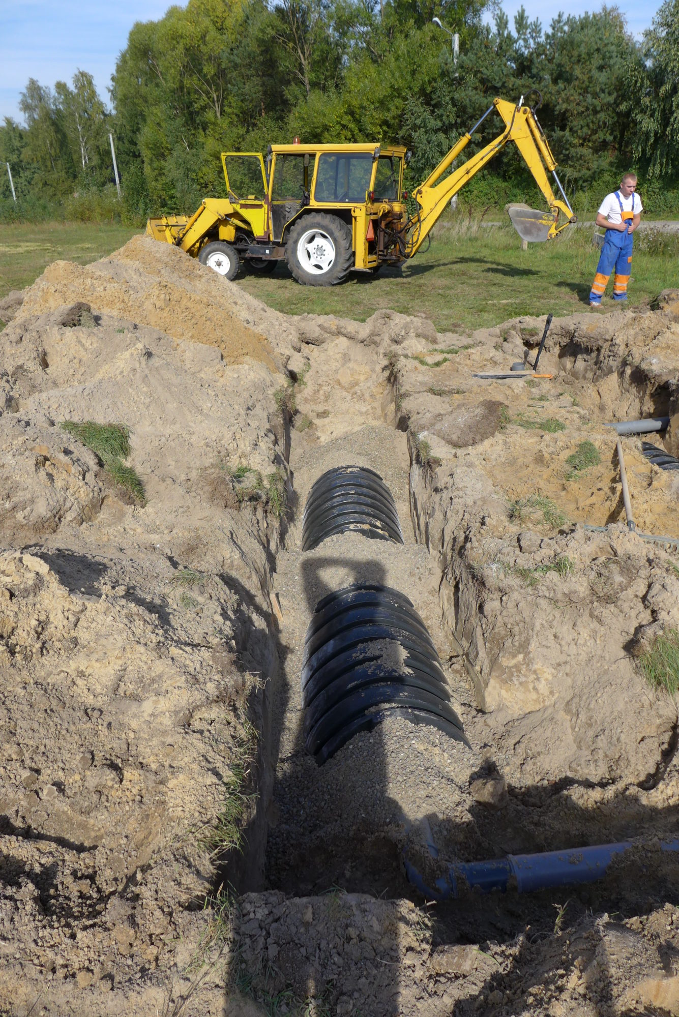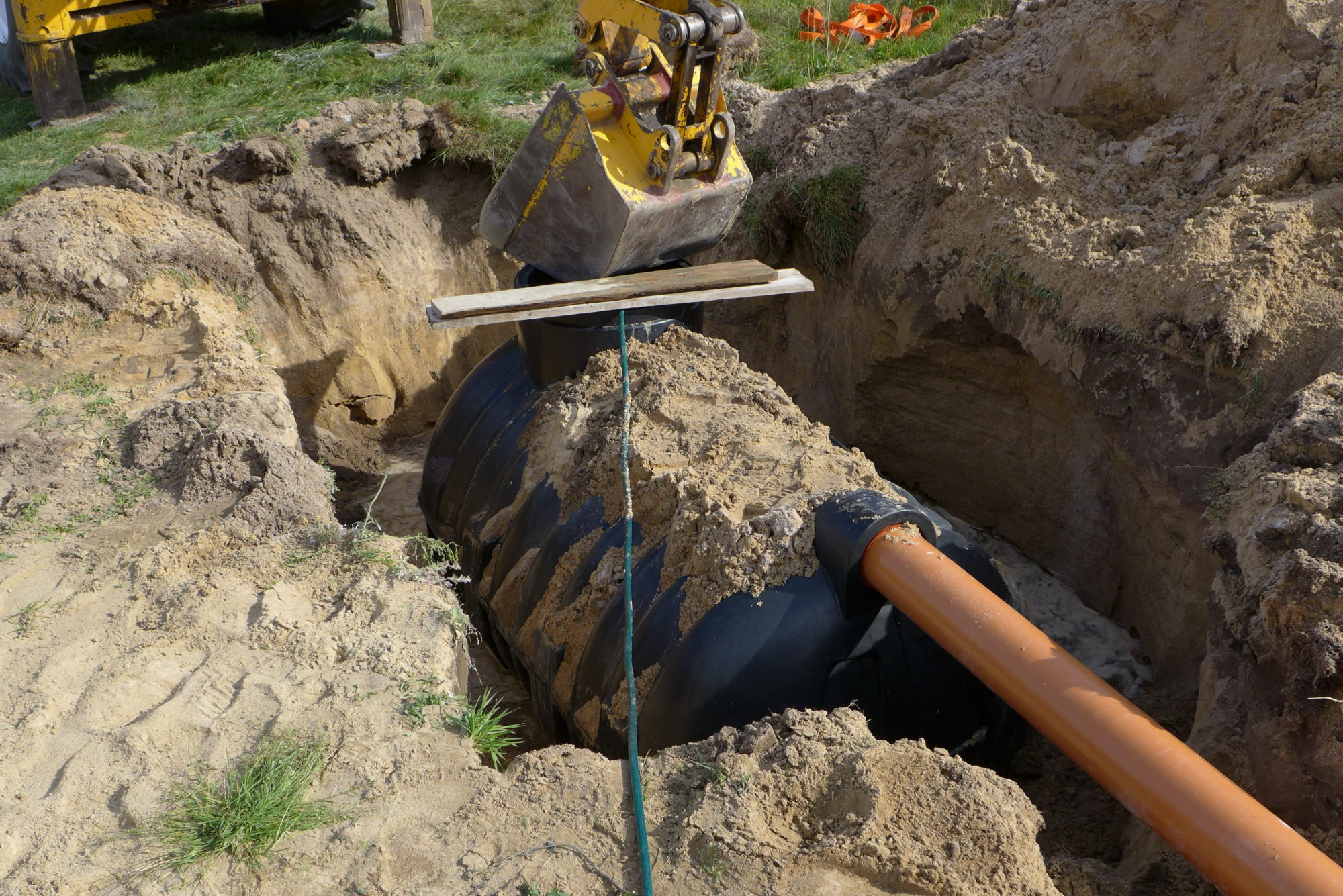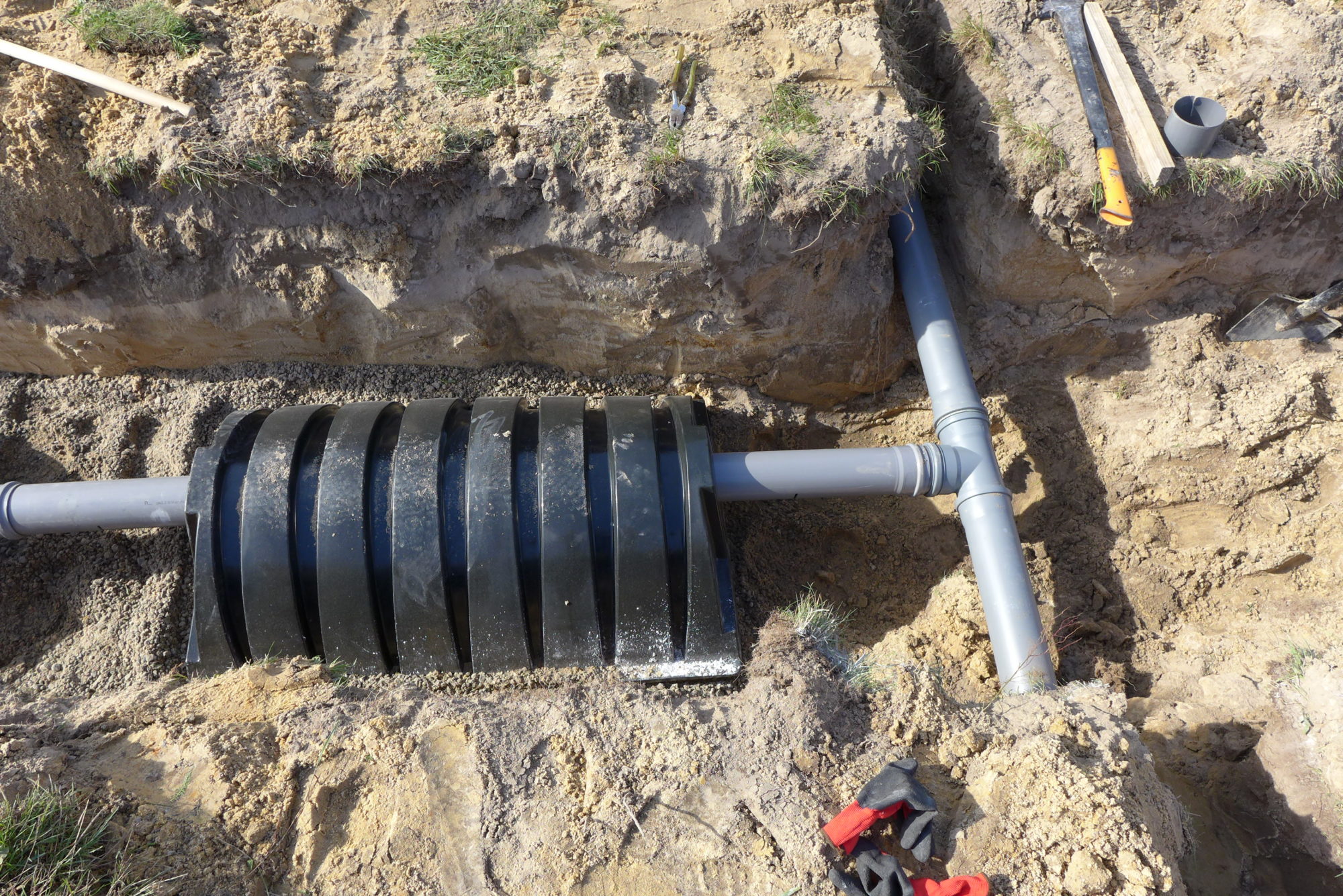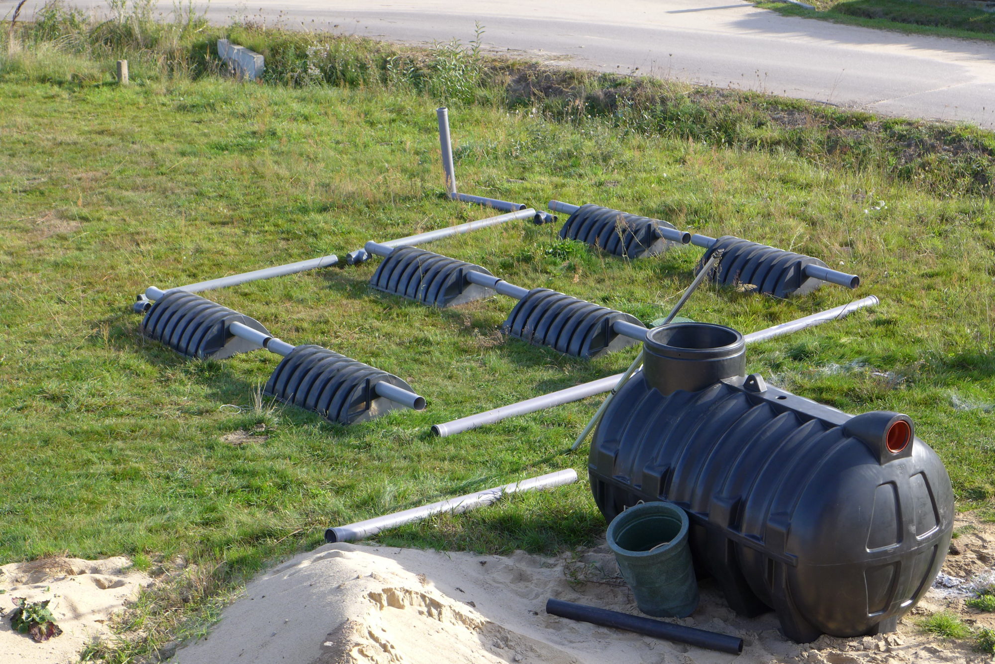 Budowa przydomowej oczyszczalni ścieków. W ramach drobnych inwestycji podjęliśmy się montażu ekologicznej oczyszczalni ścieków. Klient wcześniej przygotował wykop pod zbiornik więc Naszym zadaniem było jedynie wykonanie wszystkich połączeń wraz z niwelacją spadków rur. Wykonanie zasypki zgodnie z zaleceniami producenta oraz rozruch całej oczyszczalni wraz z uporządkowaniem terenu po wykonaniu prac. Zbiornik V = 2000 l dla max. 4 osób, 3 tunele rozsączające na podsypce i w obsypce żwirowej. Całość zasypana gruntem urodzajnym.